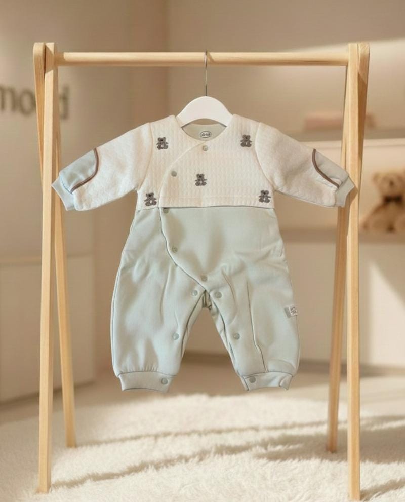 Baby Winter Outfit - Teddy Bear Onesie with , Soft Non-Stretchy Romper for Newborns, Easy-diaper-change, Fall/Winter Clothing
